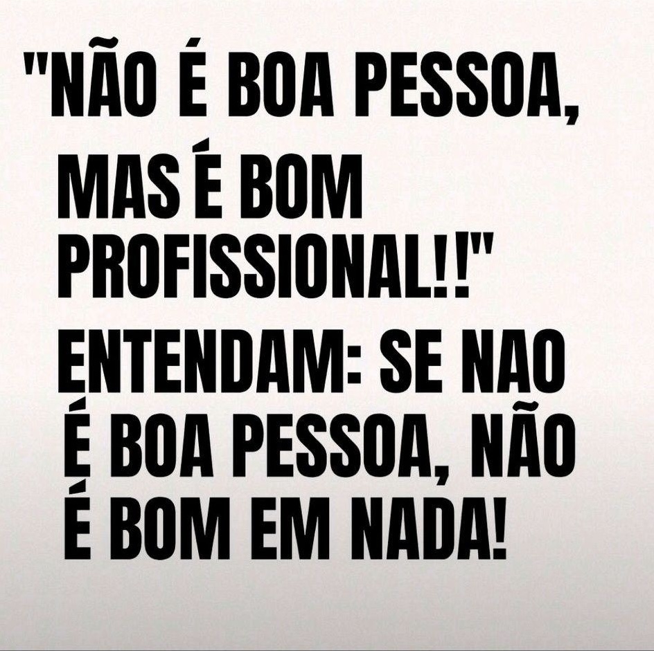 Não é boa pessoa, mas é bom profissional! Entendam: se não é boa pessoa, não é bom em nada!