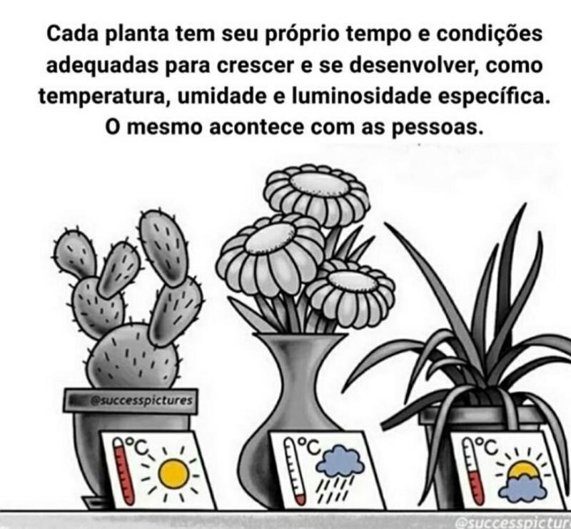 Cada planta tem seu próprio tempo e condições adequadas para crescer e se desenvolver, como temperatura, umidade e luminosidade específica. O mesmo acontece com as pessoas!