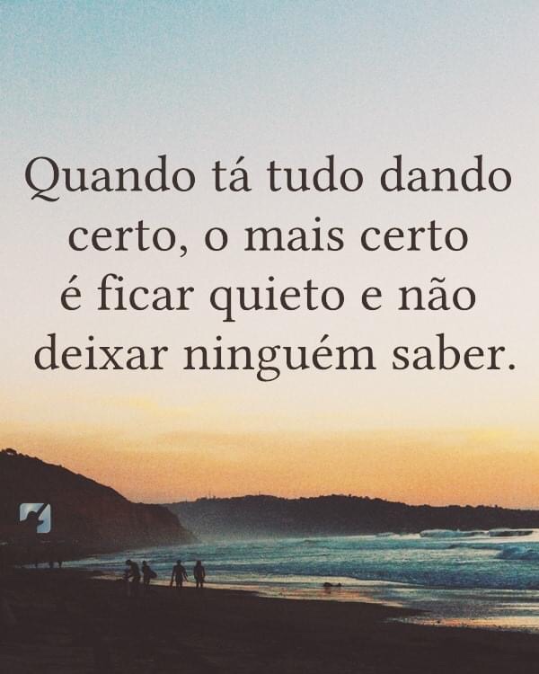 Quando tá tudo dando certo, o mais certo é ficar quieto e não deixar ninguém saber!