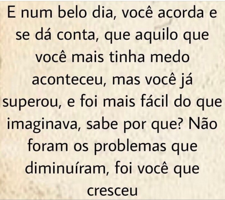 E num belo dia, você acorda e se da conta, que aquilo que você mais tinha medo aconteceu, mas você já superou…
