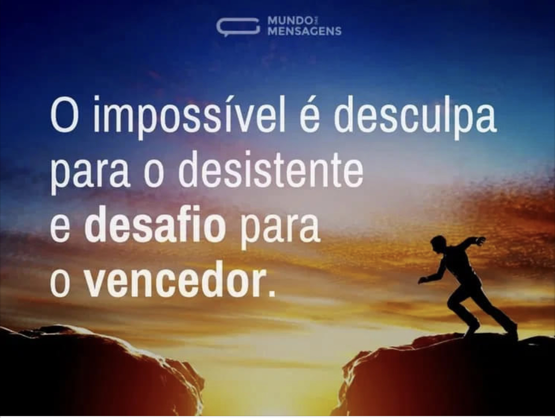 O impossível é desculpa para o desistente e desafio para o vencedor!
