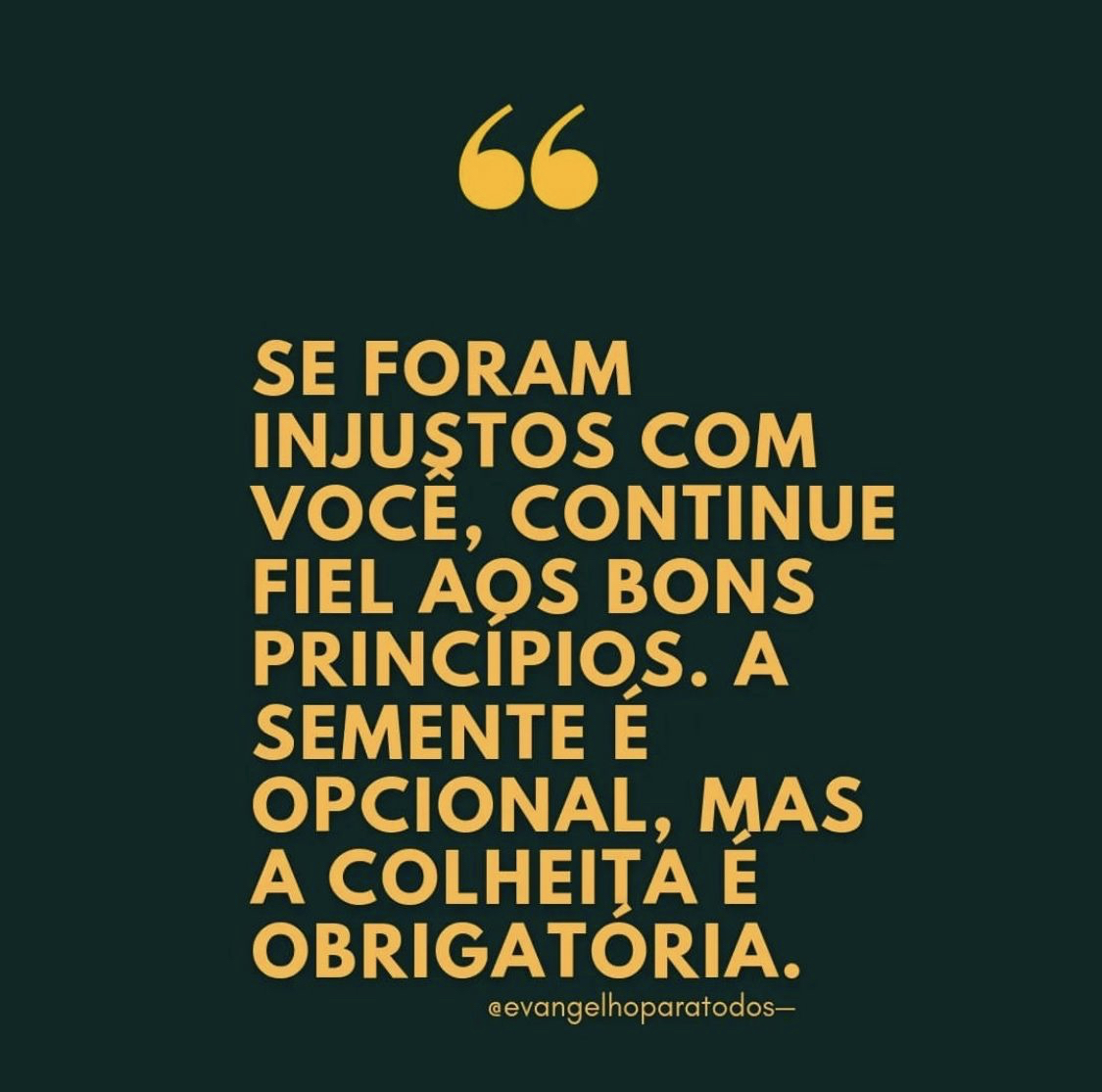 Se foram injustos com você, continue fiel aos bons princípios. A semente é opcional, mas a colheita é obrigatória!
