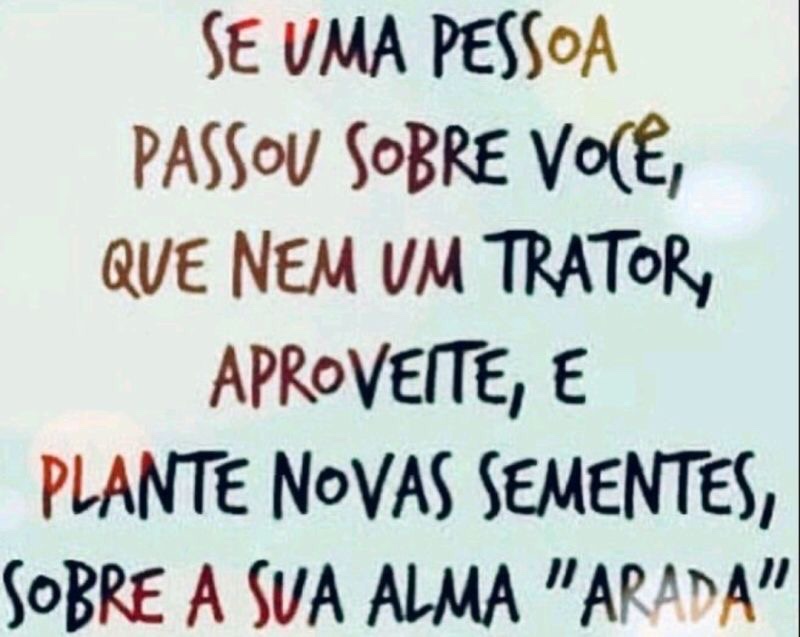Se uma pessoa passou sobre você, que nem um trator, aproveite, e plante novas sementes sobre a sua alma “arada”!