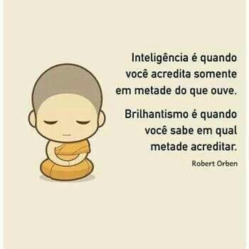Inteligência é quando você acredita somente em metade do que ouve. Brilhantismo é quando você sabe em qual metade acreditar!